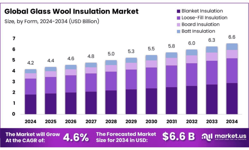 - Glass Wool Insulation Market size is expected to be worth around USD 6.6 Billion by 2034, from USD 4.2 Billion in 2024, growing at a CAGR of 4.6%.